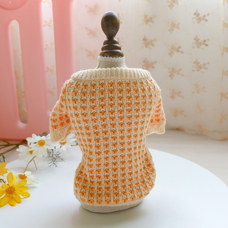Bowknot Dog Clothes Cat Costume Hollow Knit Dog Sweater